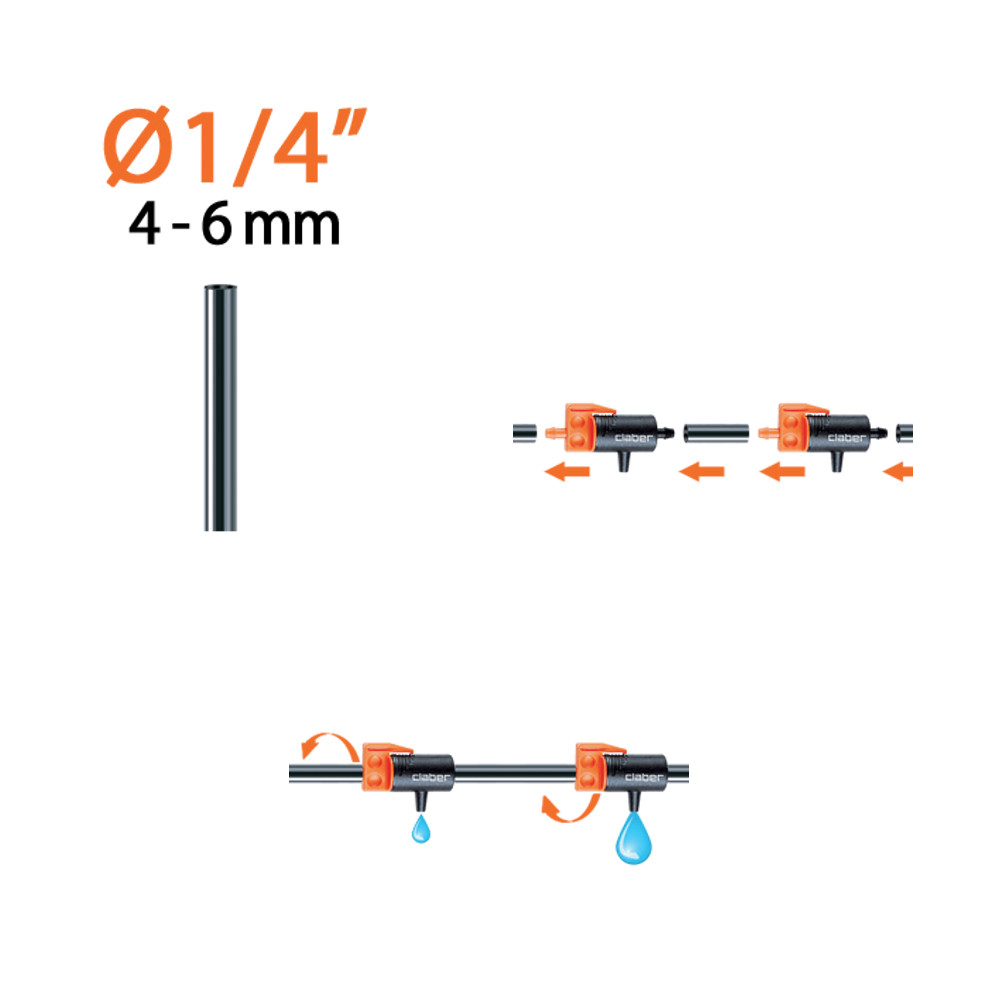 Facilmente regolabile per ogni esigenza di irrigazione, si innesta perfettamente e senza perdite d’acqua sul tubo capillare, con una semplice pressione.